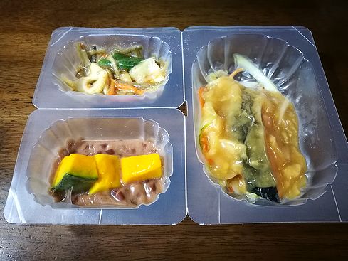 届いたお弁当(3食分)はすべて冷凍されていて、中身はこんな感じになっています。