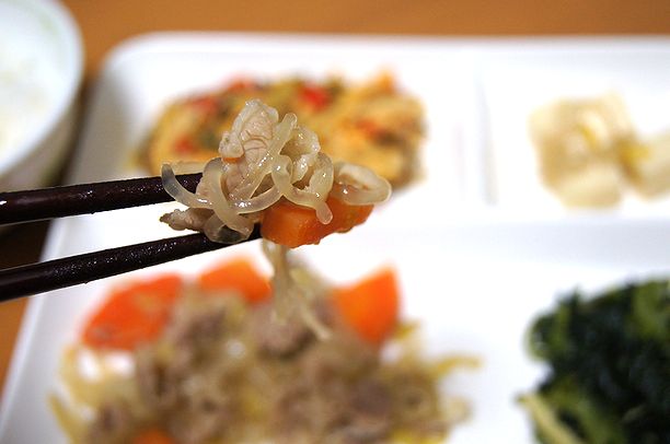 これは『牛すき焼き風煮弁当』ですが、管理栄養士が監修したメニューだからか、だいたい15品目以上あります。